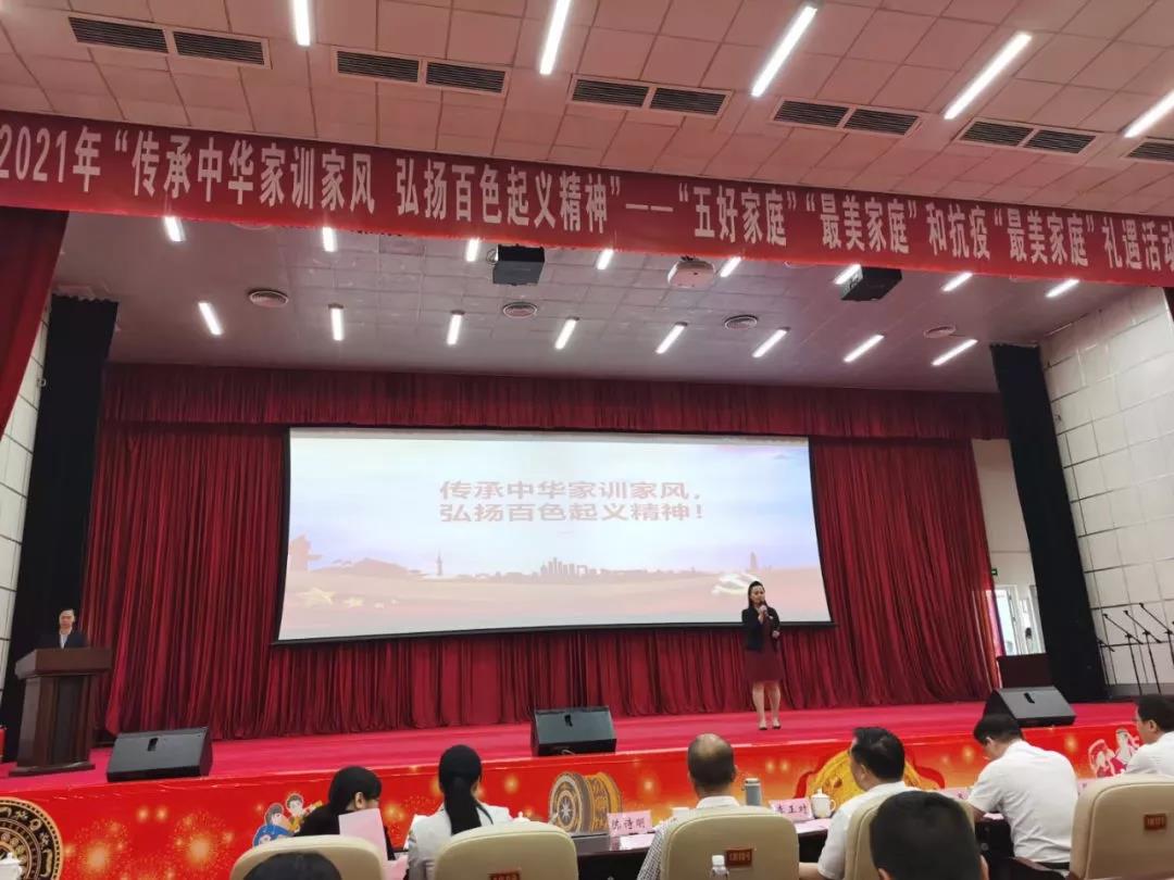 ????????為弘揚(yáng)中華民族家庭美德、樹立良好家風(fēng)、激勵抗疫精神,落實(shí)全國婦聯(lián)、自治區(qū)婦聯(lián)關(guān)于開展尋找“最美家庭”活動精神。4月30日,由百色市婦聯(lián)、市文明辦、市總工會、市教育局聯(lián)合舉辦,廣西益眾文化傳媒有限公司承辦的2021年“傳承中華家訓(xùn)家風(fēng)?弘揚(yáng)百色起義精神”——“五好家庭”“最美家庭”和抗疫“最美家庭”禮遇活動儀式在右江區(qū)禮堂舉行。來自2020年“五好家庭”“最美家庭”和抗疫“最美家庭”代表、“最美家庭”禮遇愛心單位代表以及百色市市直機(jī)關(guān)、企事業(yè)單位和社會各界代表等共計200多人參加活動。