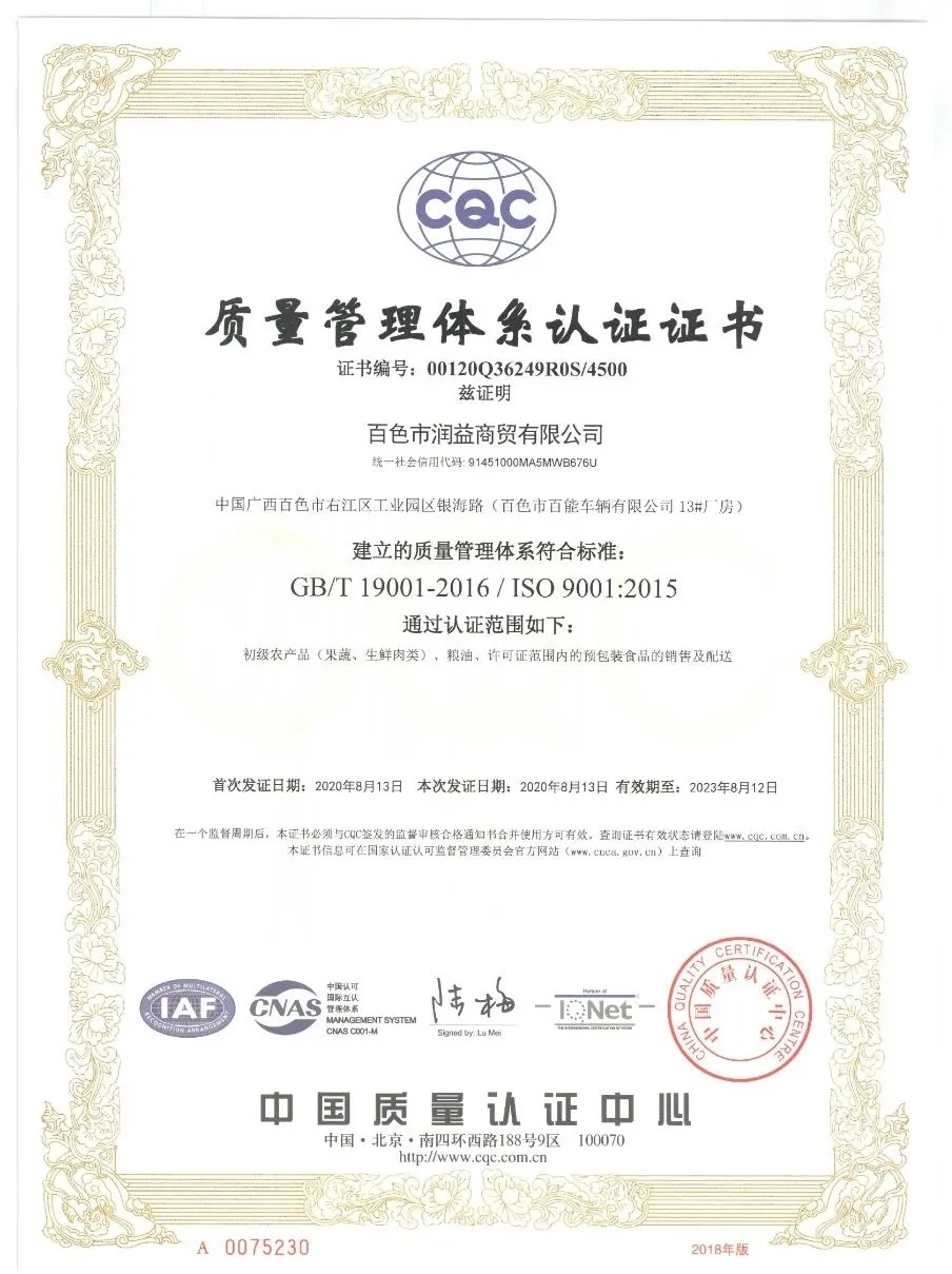 ????????近日,潤(rùn)益商貿(mào)公司順利通過ISO9001-2015質(zhì)量管理體系認(rèn)證,并取得證書。