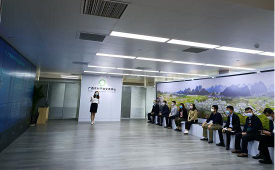 考察組一行先到北部灣產(chǎn)權(quán)交易所集團詳細了解在農(nóng)村產(chǎn)權(quán)交易中心建設(shè)與推廣取得的成果與經(jīng)驗,并就項目涉及的政策支持、合作與運營模式、投融資形式、機構(gòu)設(shè)置等問題,與北部灣產(chǎn)權(quán)交易所集團副總經(jīng)理夏雋帶領(lǐng)的團隊進行深入探討。隨后,實地參觀了貴港市覃塘區(qū)農(nóng)村產(chǎn)權(quán)交易中心,各局辦負責人及公司相關(guān)人員分別就各自所涉及的工作和業(yè)務(wù)與貴港市覃塘區(qū)政府辦、農(nóng)業(yè)農(nóng)村局等工作人員進行學習交流。