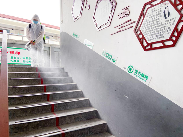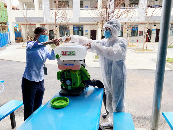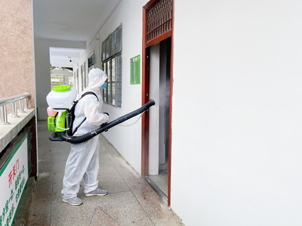 ??? 為筑牢疫情防控校園防線,打造真正安全、衛(wèi)生的校園環(huán)境,益眾托管濱江校區(qū)在百色協(xié)和醫(yī)院大力支持下,全面開展消毒防疫工作,對托管樓宿舍、廚房、食堂、樓道、衛(wèi)生間等區(qū)域進行全面消毒,為師生構筑安全屏障,以一個安全、衛(wèi)生的校區(qū)面貌靜候孩子們的歸來。(通訊員:黃桂珍)