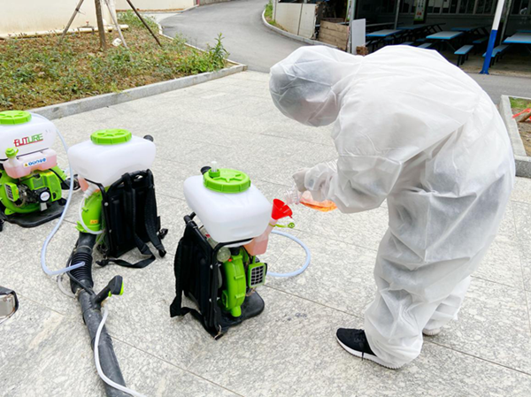 校區(qū)人員協(xié)助醫(yī)務人員添加消毒水
