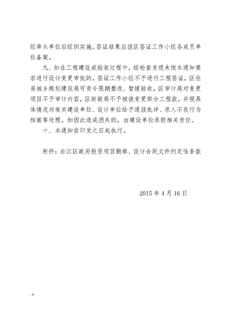 右政辦發(fā)[2015]25號 關(guān)于進一步加強右江區(qū)政府投資項目簽證管理工作的通知