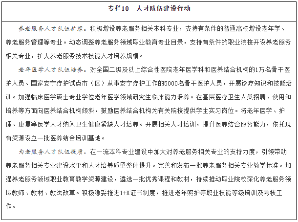拓寬人才培養(yǎng)途徑。優(yōu)化養(yǎng)老服務(wù)專業(yè)設(shè)置,結(jié)合行業(yè)發(fā)展新業(yè)態(tài),動(dòng)態(tài)調(diào)整增設(shè)相關(guān)專業(yè)并完善教學(xué)標(biāo)準(zhǔn)體系,引導(dǎo)普通高校、職業(yè)院校、開放大學(xué)、成人高校等加大養(yǎng)老服務(wù)人才培養(yǎng)力度。積極穩(wěn)妥推進(jìn)1+X證書(“學(xué)歷證書+若干職業(yè)技能等級證書”)制度。大力推進(jìn)養(yǎng)老領(lǐng)域產(chǎn)教融合,培育一批產(chǎn)教融合型養(yǎng)老企業(yè),支持院校和優(yōu)質(zhì)機(jī)構(gòu)共建合辦養(yǎng)老服務(wù)實(shí)訓(xùn)基地,探索將有條件的養(yǎng)老機(jī)構(gòu)發(fā)展成實(shí)習(xí)實(shí)訓(xùn)點(diǎn)。大力發(fā)展老年學(xué)、養(yǎng)老服務(wù)管理、健康服務(wù)與管理、中醫(yī)養(yǎng)生學(xué)相關(guān)專業(yè)本科教育。引導(dǎo)有條件的高校開設(shè)老年學(xué)、老年醫(yī)學(xué)、老年護(hù)理學(xué)、老年心理學(xué)、老年社會(huì)學(xué)、老年?duì)I養(yǎng)學(xué)、老年服務(wù)與管理、老年社會(huì)工作等課程,鼓勵(lì)高校自主培養(yǎng)積極應(yīng)對人口老齡化相關(guān)領(lǐng)域的高水平人才,加大新技術(shù)新應(yīng)用新業(yè)態(tài)的引才用人力度,為智慧健康養(yǎng)老、老齡科研、適老化產(chǎn)品研發(fā)制造等領(lǐng)域培養(yǎng)引進(jìn)和儲(chǔ)備專業(yè)人才。落實(shí)醫(yī)師區(qū)域注冊制度,鼓勵(lì)醫(yī)務(wù)人員到醫(yī)養(yǎng)結(jié)合機(jī)構(gòu)(同時(shí)具備醫(yī)療衛(wèi)生資質(zhì)和養(yǎng)老服務(wù)能力的醫(yī)療衛(wèi)生機(jī)構(gòu)或養(yǎng)老機(jī)構(gòu))執(zhí)業(yè)。在養(yǎng)老機(jī)構(gòu)舉辦的醫(yī)療機(jī)構(gòu)中工作的醫(yī)務(wù)人員,可參照執(zhí)行基層醫(yī)務(wù)人員相關(guān)激勵(lì)政策。